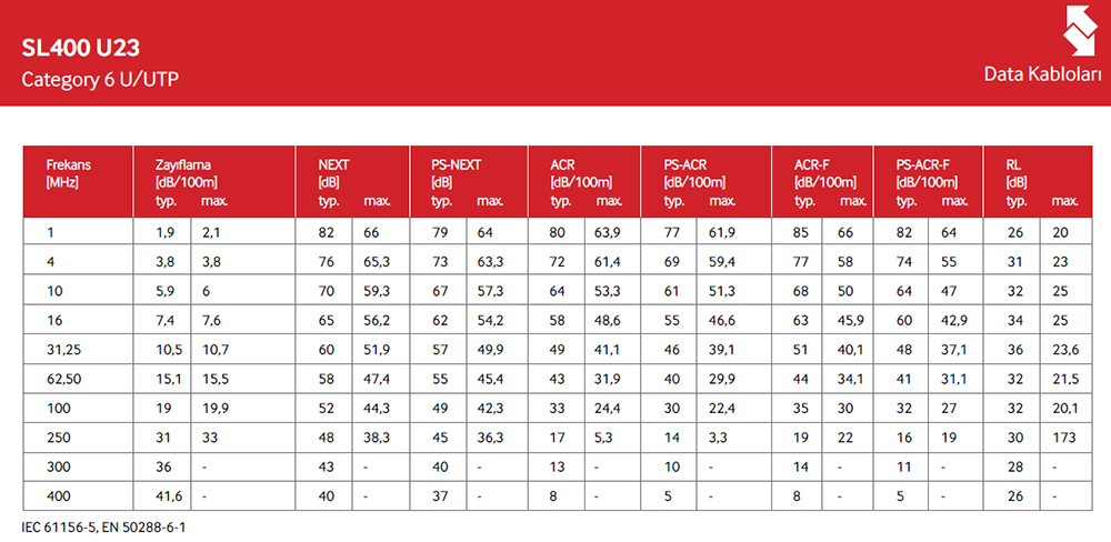 | Standartlar | ISO/IEC 11801 2nd ed., IEC 61156-5, EN 50173-1, EN 50288-6-1, ANSI EIA/TIA 568-C.2, LVD Alçak Gerilim Yönetmeliği 2014/35/AB, RoHS Bazı Tehlikeli Maddelerin Kullanımının Kısıtlanması 2011/65/AB |